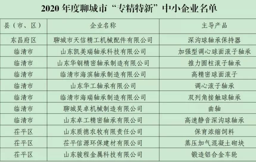 為全面落實(shí)市委、市政府關(guān)于推動(dòng)中小企業(yè)高質(zhì)量發(fā)展的若干政策措施,市工業(yè)和信息化廳局組織開展了2020年度聊城市“專精特新”中小企業(yè)認(rèn)定工作。經(jīng)企業(yè)申報(bào)、縣局推薦、專家論證、網(wǎng)站公示等程序,山東凱美瑞軸承科技有限公司等21家企業(yè)被認(rèn)定為2020年度聊城市“專精特新”中小企業(yè),現(xiàn)予發(fā)布(企業(yè)名單見附件)。