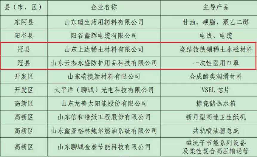 近日,聊城市工業(yè)和信息化局發(fā)布通知,公布2020年度聊城市“專精特新” 中小企業(yè)名單,聊城共有21家企業(yè)上榜,其中,冠縣占了2席,分別是山東上達(dá)稀土材料有限公司、山東云杰永盛防護(hù)用品科技有限公司。
