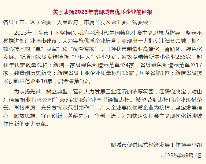 同時(shí),據(jù)聊城市促進(jìn)民營(yíng)經(jīng)濟(jì)發(fā)展工作領(lǐng)導(dǎo)小組印發(fā)的《關(guān)于表?yè)P(yáng)2023年度聊城市優(yōu)質(zhì)企業(yè)的通報(bào)》,公司還成功入選了山東省瞪羚企業(yè)、山東省質(zhì)量標(biāo)桿,充分顯示了行業(yè)和社會(huì)對(duì)上達(dá)品牌、效益、行業(yè)影響力等綜合實(shí)力的認(rèn)可與肯定。